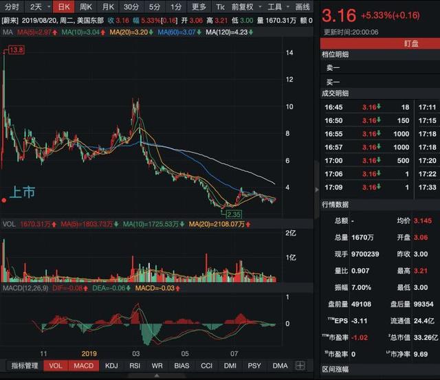 截至今年7月,蔚來兩款車?yán)塾嫿桓?9727輛,其中今年交付量達到8379輛。而此前,蔚來制定的2019年銷量目標(biāo)為4-5萬輛,從目前的交付量來看將遠遠不及預(yù)期。與此同時,蔚來傳聞已久的大裁員又有細節(jié)傳出。有知情人士透露,蔚來位于美國硅谷的分公司正在縮減規(guī)模,截至美東時間8月16日已裁減100名員工。最新這一輪裁員在今年7月份就已基本確定,當(dāng)時確定的人數(shù)為150人。蔚來汽車創(chuàng)始人兼董事長李斌近日首次回應(yīng)裁員傳聞稱,過去蔚來汽車員工已接近一萬人,本次減員是為了優(yōu)化、更快地提升運營效果。車市寒冬,新勢力造車企業(yè)正在面臨考驗,艱難歲月,更要精益求精。近日還有媒體報道稱蔚來正計劃回科創(chuàng)板上市,同時已經(jīng)關(guān)閉了其硅谷辦公室。對此,蔚來官方回應(yīng)稱皆為不實報道,并表示硅谷辦公室是蔚來全球戰(zhàn)略布局的重要一環(huán),一直處于正常的運營狀態(tài)。蔚來目前把體系化效率提升作為工作重點,員工優(yōu)化會有序地進行。近期沒有回科創(chuàng)板的計劃。蔚來汽車去年9月登陸美股之初曾一路走高,沒幾天便創(chuàng)出13.8美元的新高價。然而就目前來看,上市即巔峰,從當(dāng)時至今不到1年的時間,蔚來股價不斷走低,最新價在3美元上方,較當(dāng)時高點跌幅超70%。